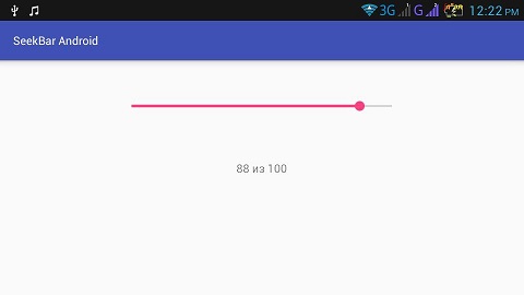 Результат выполнения приложения с виджетом SeekBar в Android.